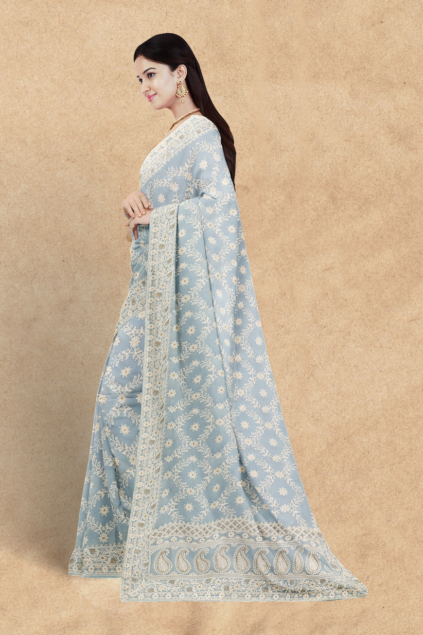 Celeste Georgette Saree with Luckhnowi Thread Work