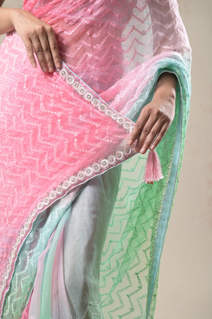 Multicolor Threadwork Chiffon Saree